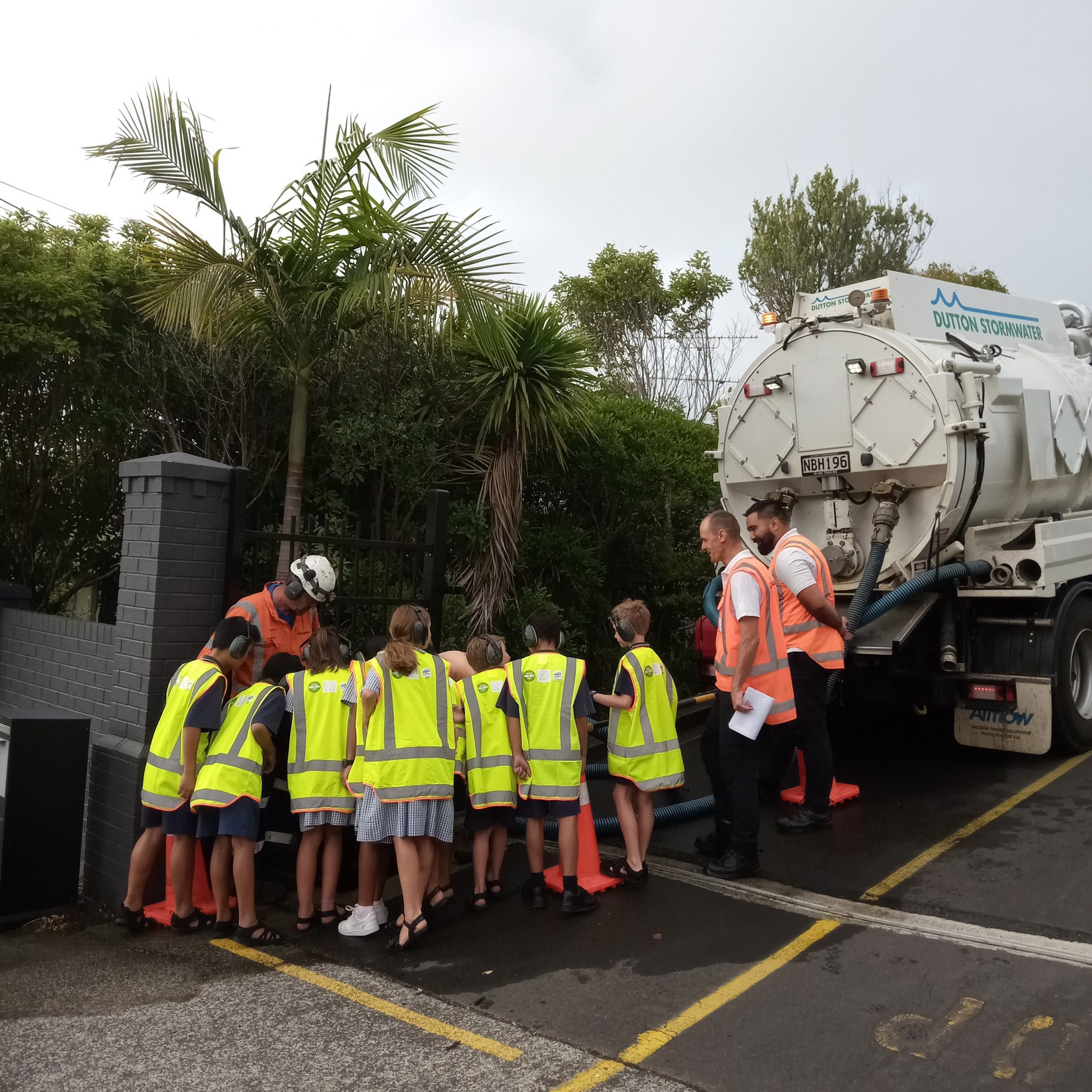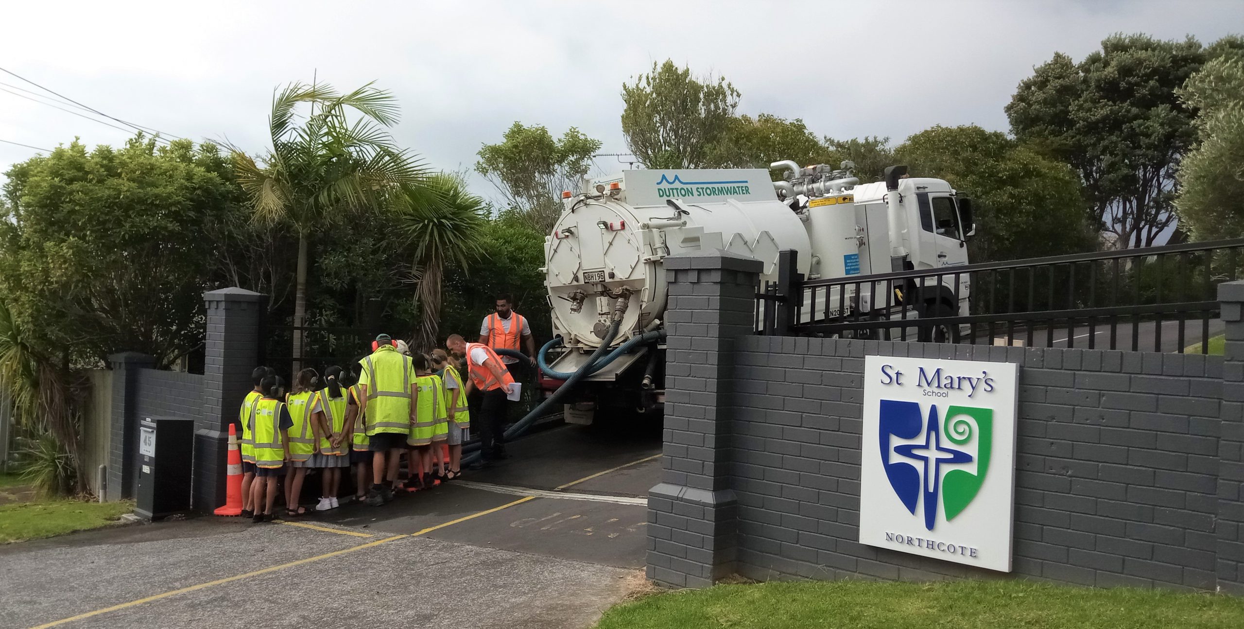 Around 50 children got to hear our Director Ed Dutton explain what our role is in helping protect the waterways and environment around New Zealand, then our crew demonstrated a Cess Pit service with the Vacuum Truck.