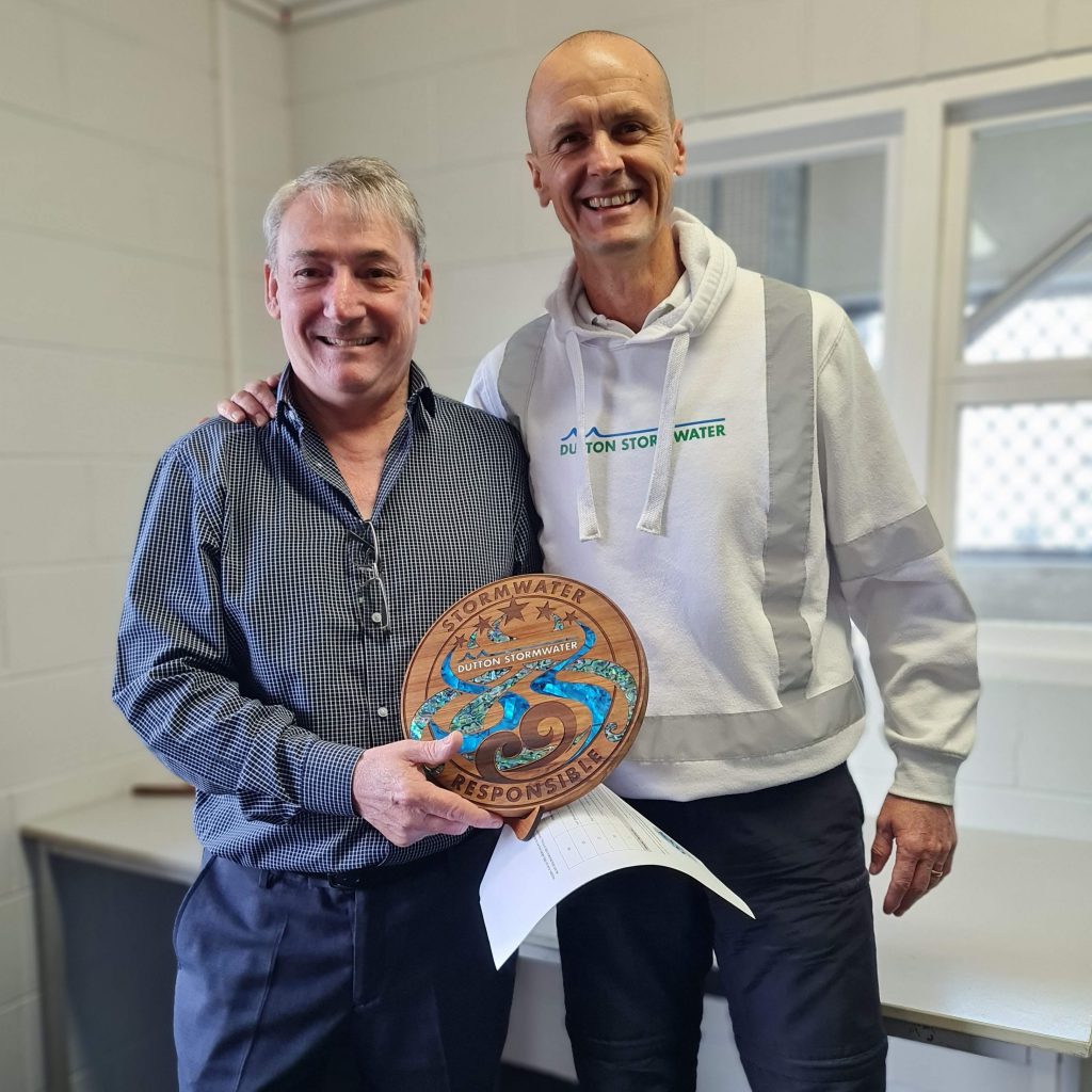 I recently had the privilege of presenting our third Stormwater Responsible Badge, which was awarded to one of our oldest and most loyal customers – Visy Recycling. I have been involved in the stormwater system at Visy since 2007 when the sand-peat filters were installed. Since then, we have grown with Visy, and together we have managed to bring their annual maintenance costs down from year to year.